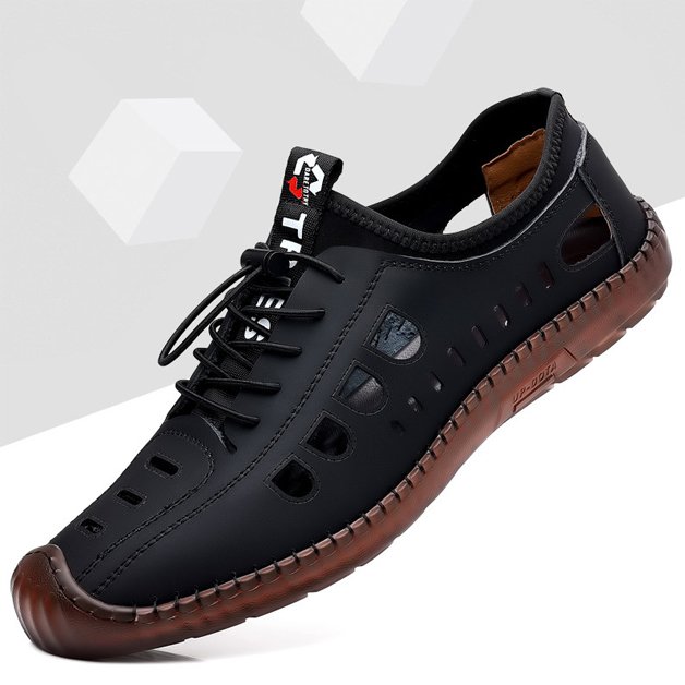 Men's leather hollow sandals